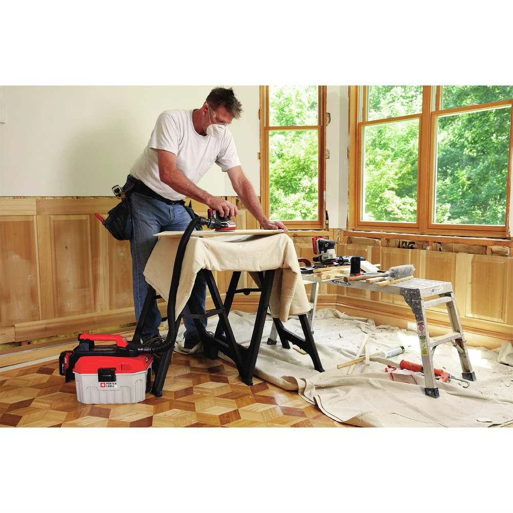 Porter-Cable PCCW205B. Features: Vacuum port to hook up to a 1 ¼ in. hose for more efficient dust removal. Detachable dust bag for efficient dust collection. Rubber grip for more comfortable sanding.