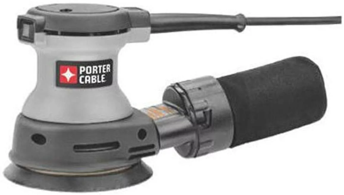 Providing maximum sanding speeds needed for smooth finishes the PORTER-CABLE Random Orbit Sander features a controlled finishing system maintaining controllable pad speeds while minimizing gouging during start up. Sander includes a dual plane counter, balanced fan reducing user fatigue, dust-sealed switch protecting against dust ingestion for longer switch life and sealed 100% ball bearing construction. Compatible with 5 and 8 hole hook and loop paper. Porter-Cable’s 382 5-inch random orbit sander is ideal for surface prep before painting or staining, smoothing seams where materials meet, or removing old coats of varnish (view larger). The Porter-Cable 382 5-inch random orbit sander is equipped with a slew of features that make it ideal for any number of DIY and professional sanding applications. Ideal for fine sanding and finishing work thanks to its random-pattern sanding that doesn’t leave swirls or gouges in the material—be it metal, wood or composite—the 382 random orbit sander provides maximum sanding speed for smooth finishes. Porter-Cable’s Controlled Finishing System allows for controllable pad speed, especially during startup. Whether you’re preparing a surface for a coat of paint or stain, smoothing seams where pieces of material meet, or removing olds coats of paint or varnish from furniture, the 382 is the lightweight yet powerful random orbit sander to get the job done. Powerful Sander for Fine Finishing The 382 5-inch random orbit sander is equipped with a 1.9-amp motor that is capable of 12,000 OPM, allowing you to power through sanding applications big and small to as fine a finish as you need. Accepting 5-inch 8-hole hook-and-loop sandpaper, the 382 utilizes Porter-Cable’s Controlled Finishing System to maintain controllable pad speed and minimize gouging, making for a consistent finish and extra-smooth sur