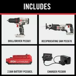 Porter-Cable 20V MAX Cordless Drill Combo Kit with Reciprocating Saw, 2-Tool (PCCK603L2)